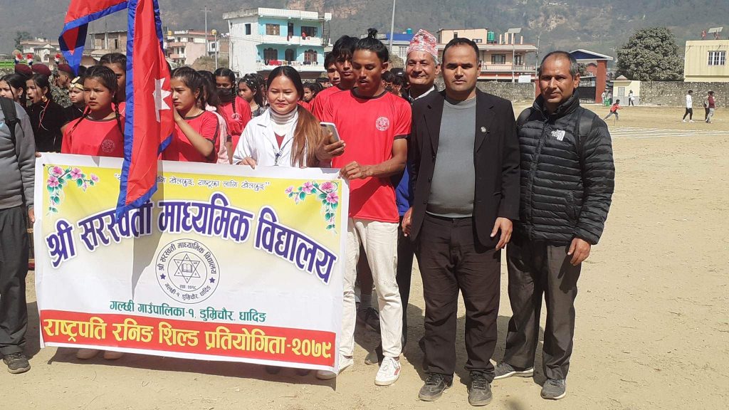 साकार पोष्ट माघ २७ गल्छी बैरेनी धादिङ । गल्छि गाउँपालिका स्तरीय राष्ट्रपति रनिङ शिल्ड प्रतियोगिता शनिबारबाट गल्छी गाउँ पालिका वडा नं ४ मासटारमा रहेको जनकल्याण माध्यमिक विद्यालयको प्राङ्गणमा सुरु भएको छ।उक्त कार्यक्रमको उद्घाटन प्रमुख अतिथी तथा जिल्ला समन्वय समिती धादिङका प्रमुख नवराज अधिकारी र गाउँपालिका अध्यक्ष केदारनाथ खतिवडाले भलिबल पास गरेसँगै प्रतियोगिता सुरु भएको हो । सोहि विद्यालयको व्यवस्थापन र गल्छि गाउँपालिकाको शिक्षा तथा खेलकुद विकास शाखाको आयोजनामा सुरु भएको प्रतियोगितामा गल्छी गाउँपालिका भित्र रहेका नौ वटा विद्यालयका विद्यार्थीहरुले विभिन्न विधामा सहभागिता जनाएका छन् ।