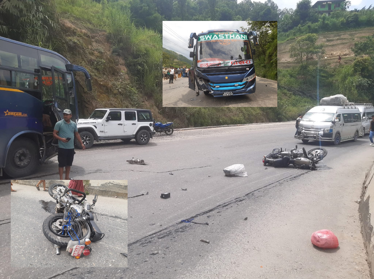 सवारी साधनहरूलाई नियन्त्रणमा लिई घटनाको थप अनुसन्धान भइरहेको जिल्ला ट्राफिक कार्यालय, धादिङले जनाएको छ ।